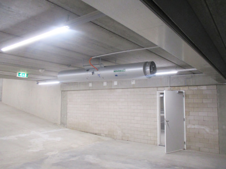 For the latest pride of Mercedes-Benz, a modern office building in Nieuwegein, the Netherlands, NOVENCO Building & Industry was awarded the contract for re-design of the two-layer car park ventilation system, component delivery, installation and certification according to the Dutch BRL-K21025 for certification of Smoke Control Systems. The system from NOVENCO Building & Industry consists of 18 pcs jet fans type AUO 290, one large axial flow fan type ACN 1000 for air supply and two large extract shafts fitted with two axial flow fans type ACN 1000, which ensure safe and efficient extraction of the polluted air mixture from the car park facility.